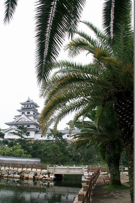 堀の周りにはヤシの木が植えられ、南国ムードたっぷりの城。
